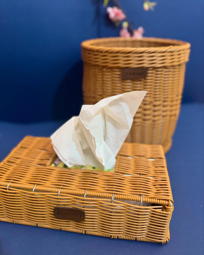 ست سطل زباله و جا دستمال کاغذی مدل حصیری