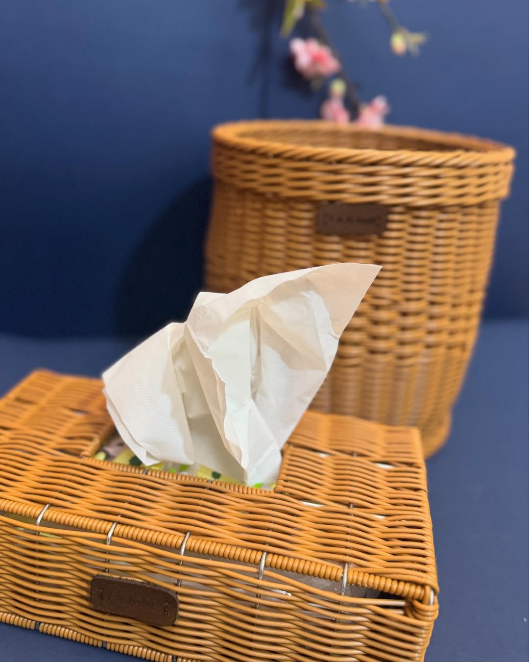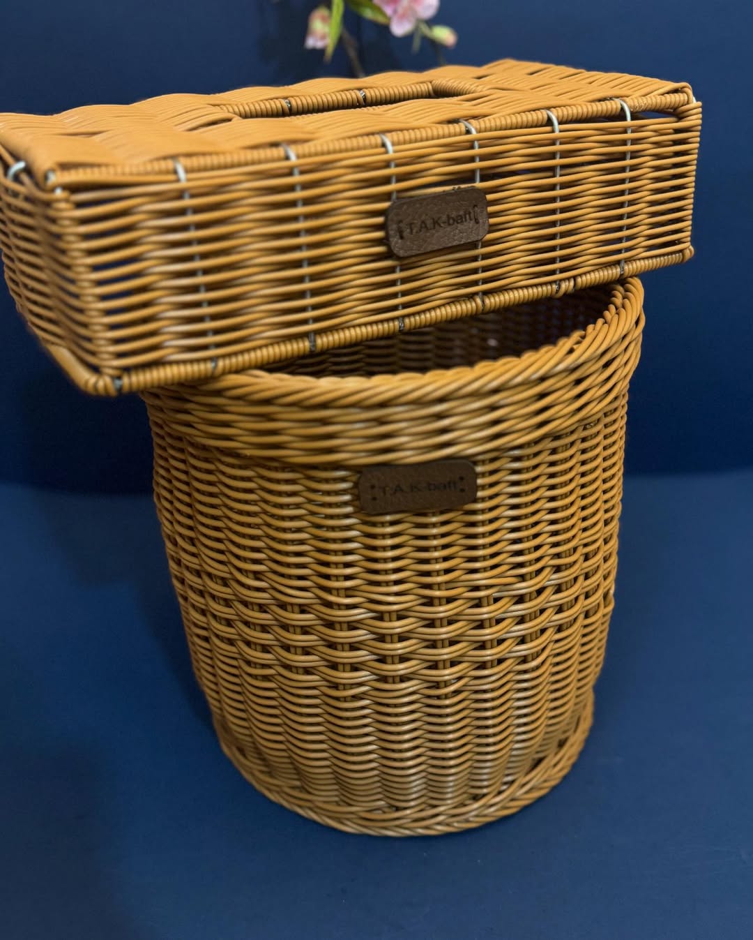 ست سطل زباله و جا دستمال کاغذی مدل حصیری
