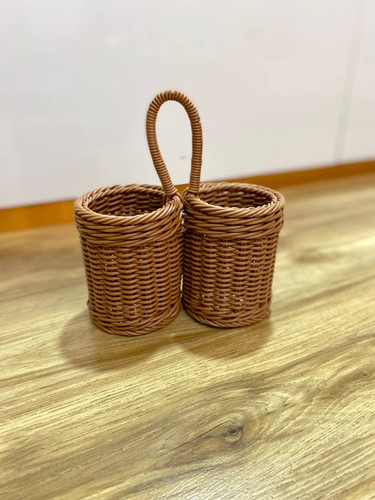 جا قاشق دو قلو دست بافت مدل حصیری نسکافه ای روشن